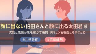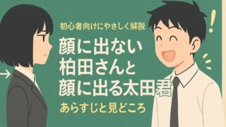 顔に出ない柏田さんと顔に出る太田君 顔に出ない柏田さんと顔に出る太田君【田所君は敵か味方か】関係性を徹底考察 「感情は顔に出るものだ」──そんな通念をひっくり返すのが、本作『顔に出ない柏田さんと顔に出る太田君』。“無表情”の柏田さんと、“表情が全部バレる”太田君。この温度差のあいだに、第三の温度として場を整えるのが田所君です。この記事は、彼が“敵”... 2025.09.08 顔に出ない柏田さんと顔に出る太田君