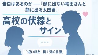 顔に出ない柏田さんと顔に出る太田君 告白はあるのか──『顔に出ない柏田さんと顔に出る太田君』高校の伏線とサイン いちばん大きな出来事は、いつも静かにやって来る。『顔に出ない柏田さんと顔に出る太田君』の「高校」もそうだ。中学で告白が成立し、恋人になった二人は、制服と時間割が変わるだけで、日常の温度まで一気に変えはしない。むしろ、“微差”が意味を持つ世界... 2025.09.26 顔に出ない柏田さんと顔に出る太田君